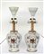 Manifattura francese, Samson, secolo XIX. Coppia di vasi in porcellana bianca dipinta in policromia con stemmi nobiliari e mazzi di fiori sparsi entro cartigli in rilievo (h cm 36) montati a lampada in epoca posteriore (difetti)