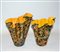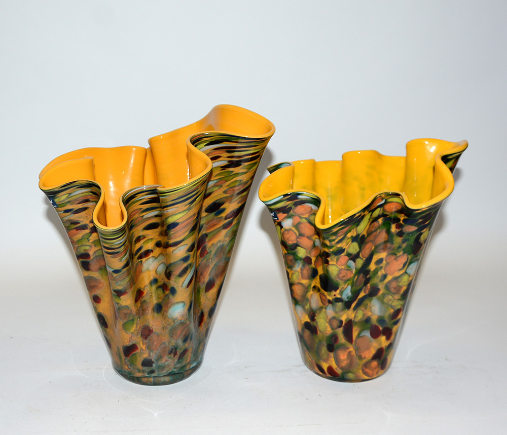 Lotto composto da due vasi a fazzoletto in vetro policromo con interni in vetro giallo (h max cm 31)
