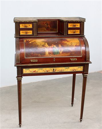 Ribalta a rullo decorata a verre peint a scena di genere, cassetti a...