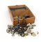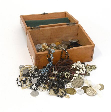 Scatola in legno contenente medagliette votive (difetti)
