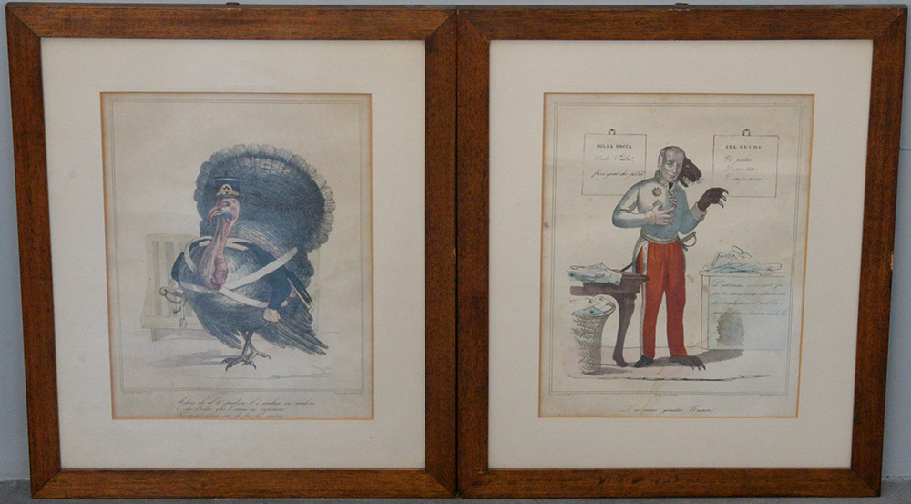 Lotto composto da quattro incisioni acquarellate di cui due inerenti l'occupazione austriaca di Milano, una raffigurante il viceré Ranieri ed una allegorica.