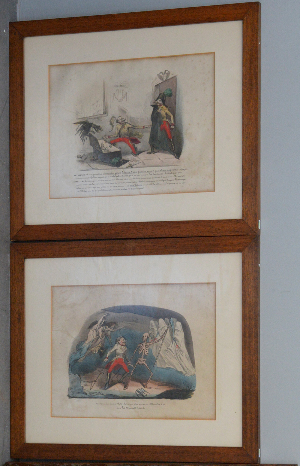 Lotto composto da quattro incisioni acquarellate di cui due inerenti...