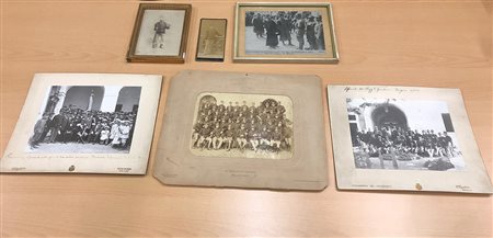 Lotto di sei fotografie di ambito militare: ufficiali del ventinovesimo reggimento fanteria, Milano 1905; ufficiali del trentesimo reggimento fanteria, 1908; ufficiali coscritti, 1910; fotografia di un alpino in uniforme da campagna (in cornice); ufficiale di fanteria, fine secolo XIX; Carlo I d'Asburgo. (in cornice)