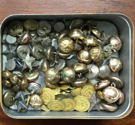 Lotto di bottoni militari vari da ufficiale di artiglieria, da ufficiale dei bersaglieri, da una serie con corona reale e svariate stellette metalliche.