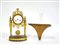 Pendola a portico in bronzo a base ovale, decorata con figure mitologiche e fregi sorretta da due erme laterali. Quadrante smaltato a numeri romani,firmato. Movimento con carica settimanale con suoneria delle ore e delle mezze su campanello e partitora, sospensione a filo, unito ad una mensola in legno di recente fattura. Prima metà sec. XIX (cm 25x41) (difetti)