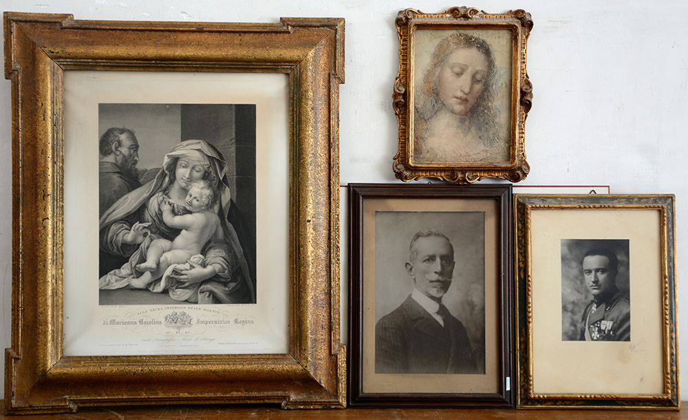 Lotto composto da una stampa del secolo XIX, due fotografie ed una riproduzione in cornice
