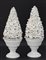 Coppia di contenitori con tappo in ceramica bianca a forma di vasi fioriti...
