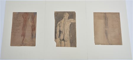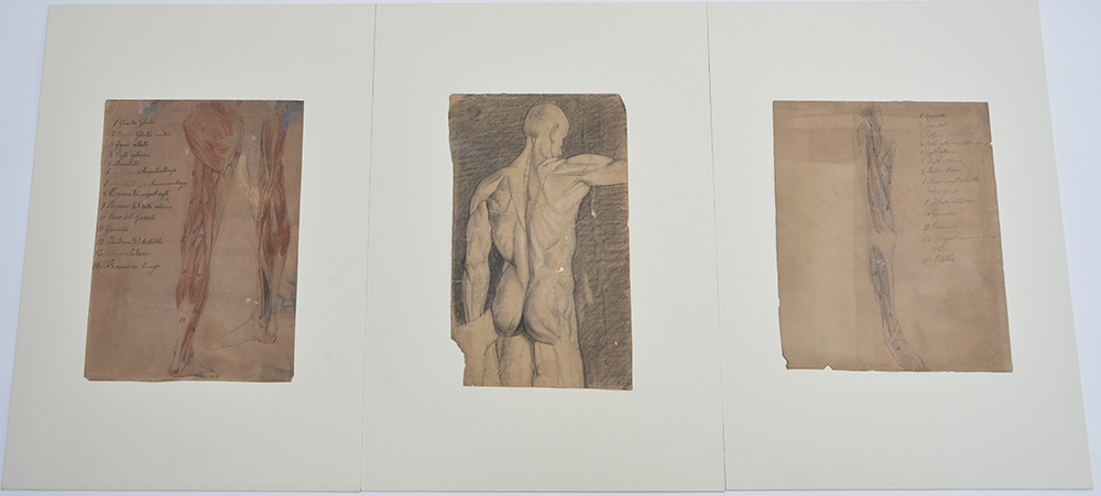 Cartella contenente sette disegni del secolo XVIII raffiguranti "Studi anatomici" misure diverse (difetti)
