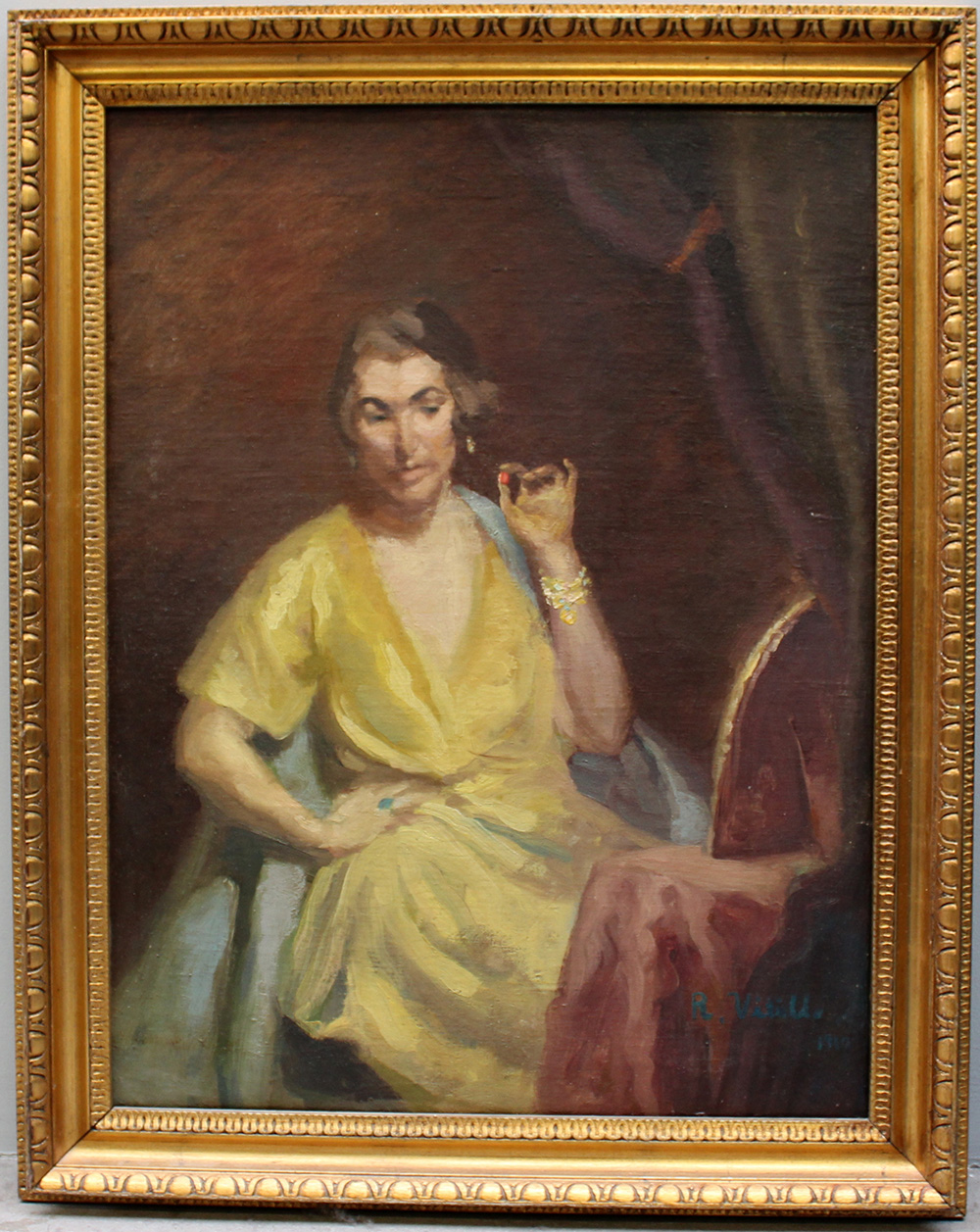 Raffaele Vitiello (Torre Annunziata 1875)"Allo specchio" olio su tela (cm...