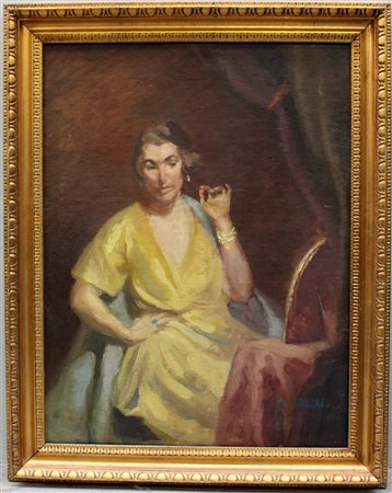 "Allo specchio" olio su tela (cm 65.5x50.5) Firmato e datato in basso a destra 1919. In cornice