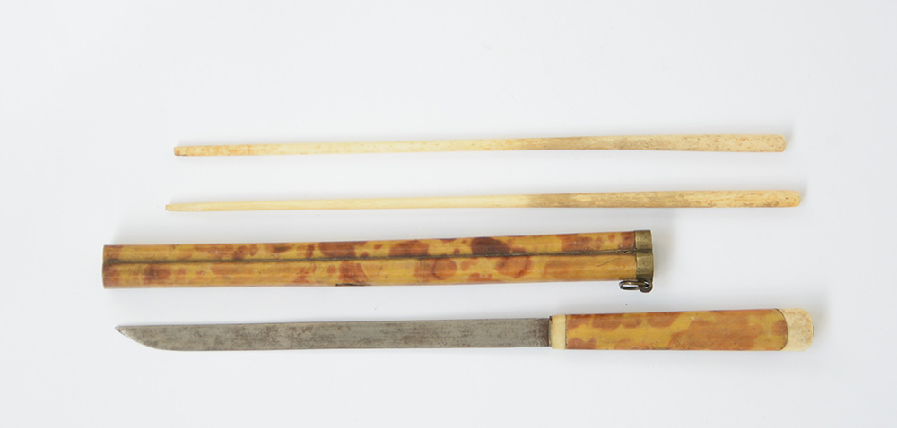 Set composto da bacchette e coltello in osso, in custodiaCina, inizio secolo...