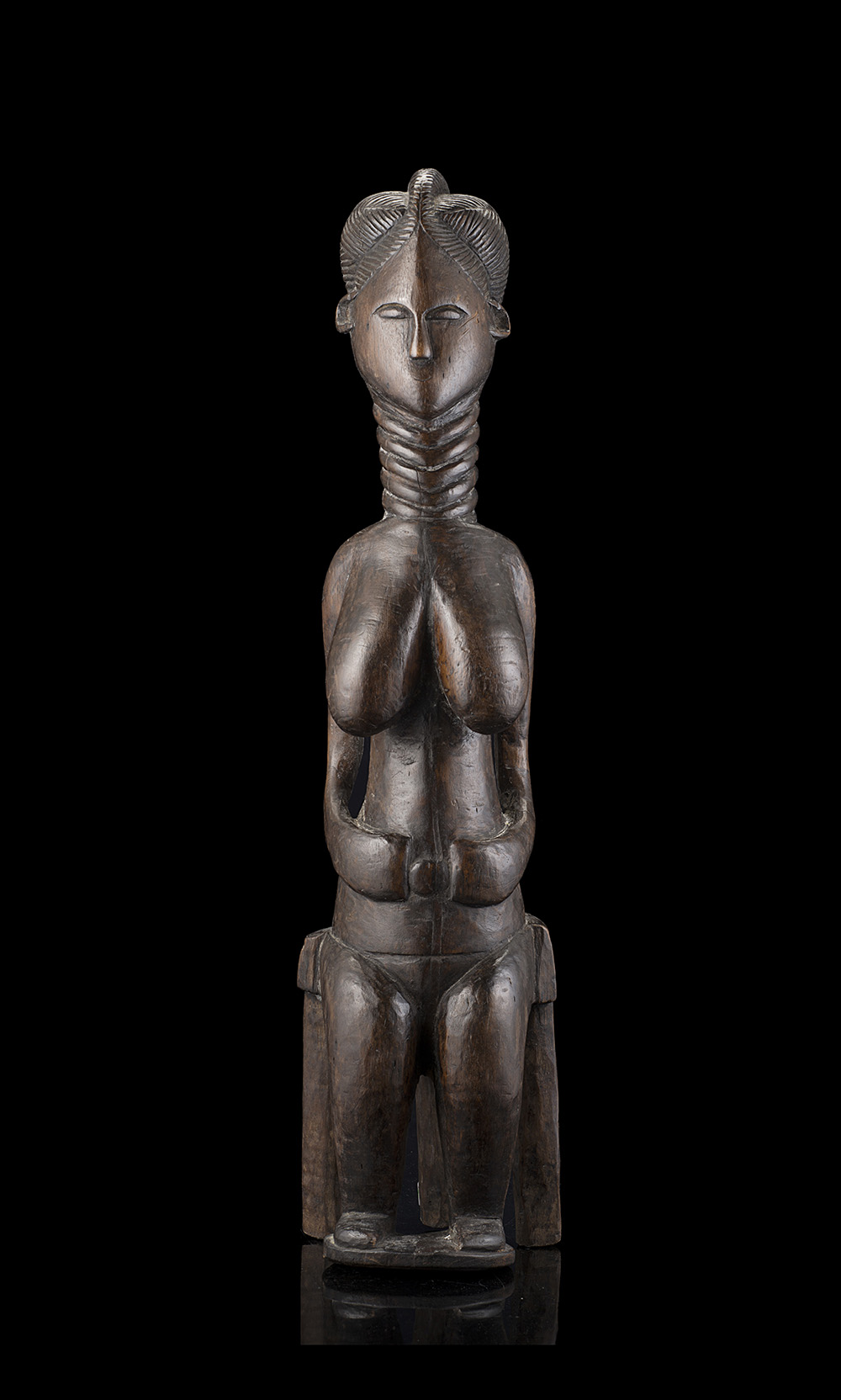 A wooden seated female figure. Mende (Liberia-Sierra Leone) First half of the 20th century (h. cm 55) (defects)