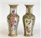 Coppia di vasi in porcellana Famiglia Rosa Cantonese, decorati con figure e motivi floreali. Cina, sec. XIX (h cm 24) (difetti e restauri)