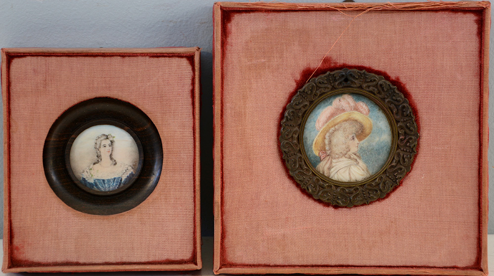 Lotto composto da due miniature di autori diversi raffiguranti gentildonne (difetti)