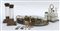 Lotto composto da un servizio da tavola in sheffield con boccette in vetro,...