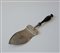 Paletta da dolci traforata in argento inciso, centrata da cartella cifrata. Manico in legno ebanizzato e tornito. Genova, fine secolo XIX (g 140 ca. compreso il manico)