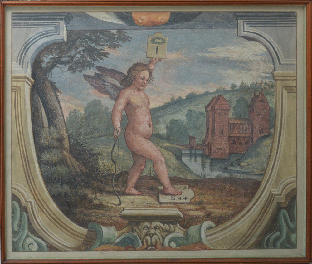Ignoto del secolo XX "Putto in un paesaggio" strappo d'affresco (cm 117x139) In cornice (difetti)