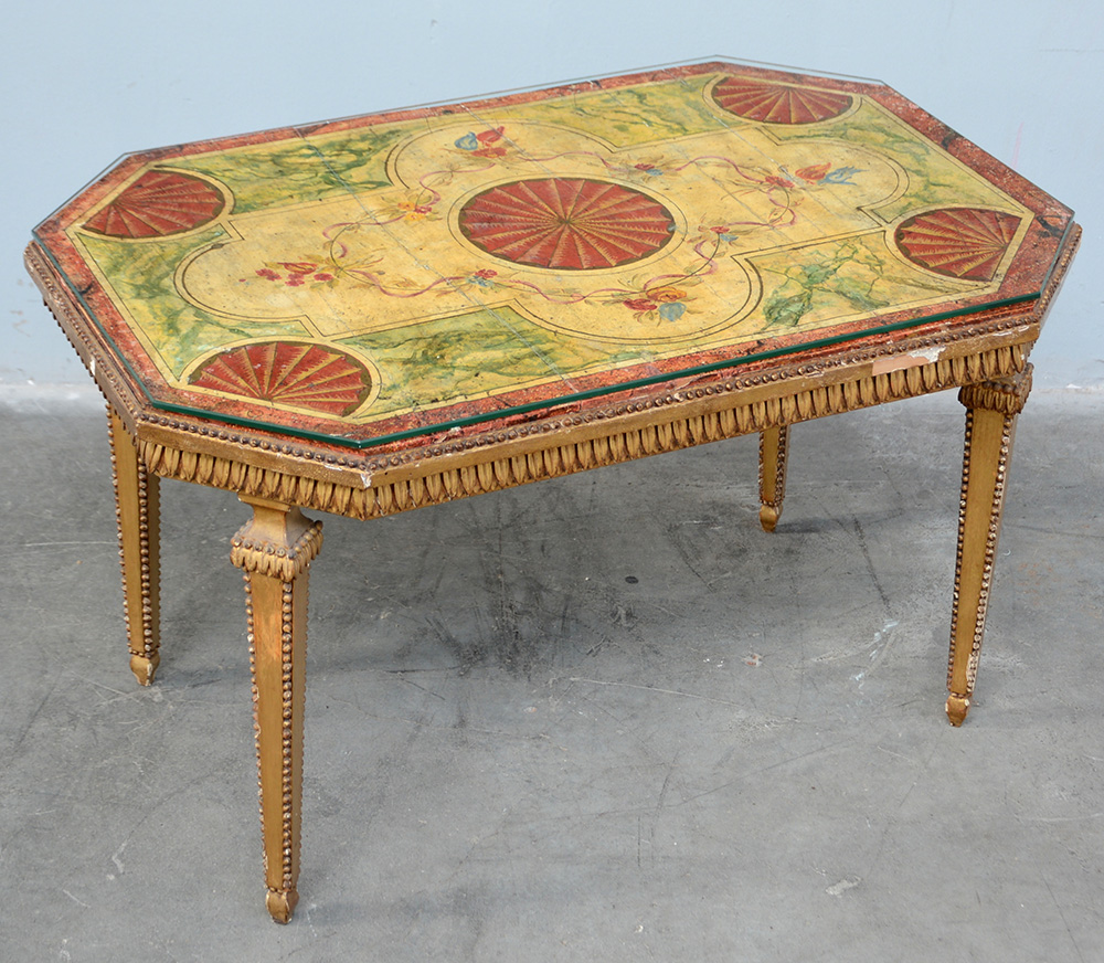 Lot 1994 | Tavolino ottagonale con fasce e gambe dorate, piano laccato a finto marmo e...