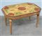 Tavolino ottagonale con fasce e gambe dorate, piano laccato a finto marmo e motivo floreale (cm 73x43x48) (difetti)