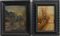 Due dipinti ad olio raffiguranti paesaggi con cascinali, misure diverse, in cornici ebanizzate.
