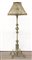 Lampada da terra in ferro battuto laccato bianco con paralume ad uncinetto, inizio secolo XX(h cm 190) (difetti)