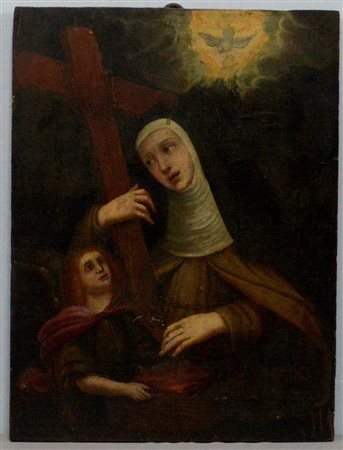 Ignoto del secolo XVIII "Santa con angelo" olio su tavola (cm 49,5x37,3) (difetti e restauri)