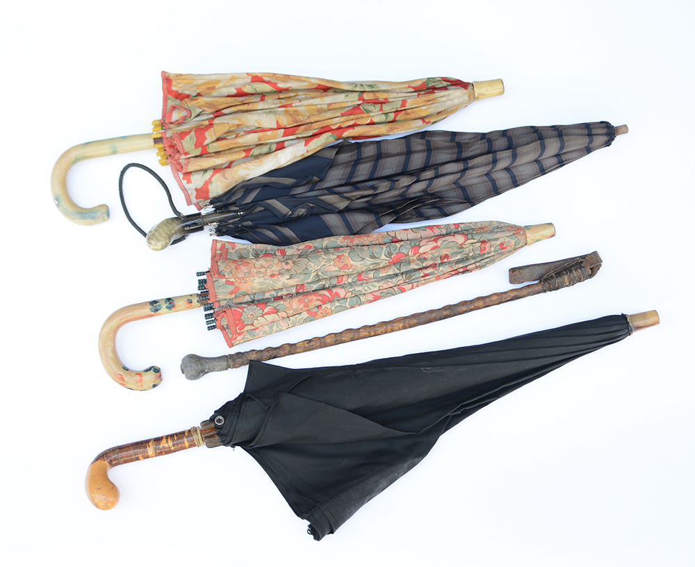 Lotto composto da quattro ombrellini da donna ed un frustino da cavallo (difetti)