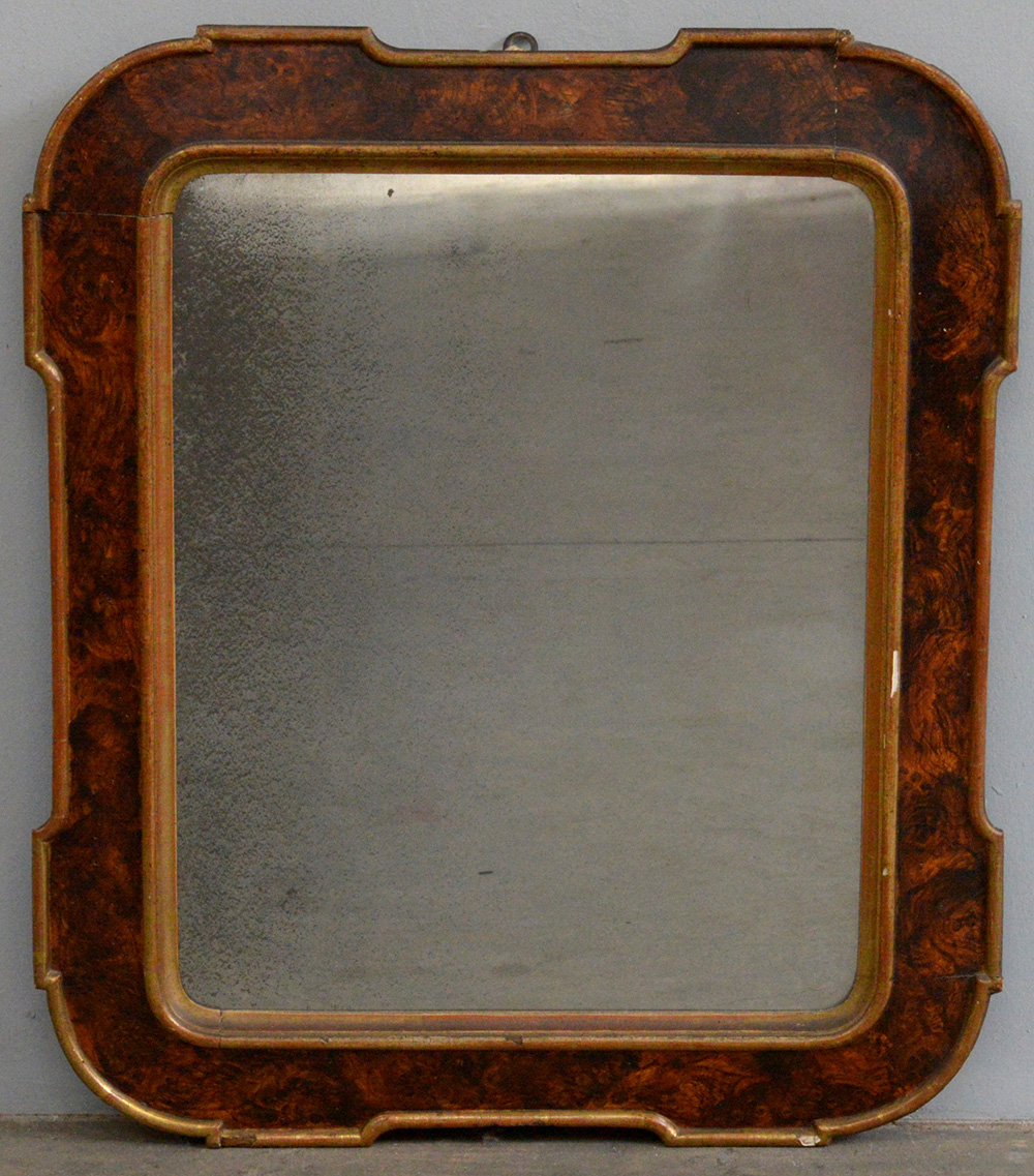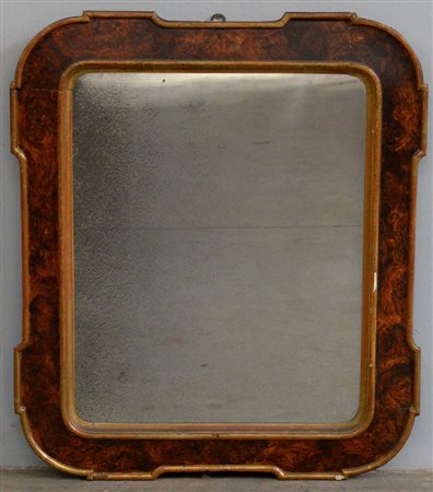 Specchio con cornice a "vassoio" decorata a finta radica. Secolo XIX (cm 73x61) (difetti)