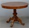 Tavolo tondo con gamba centrale tornita terminante a quattro piedi intagliati...