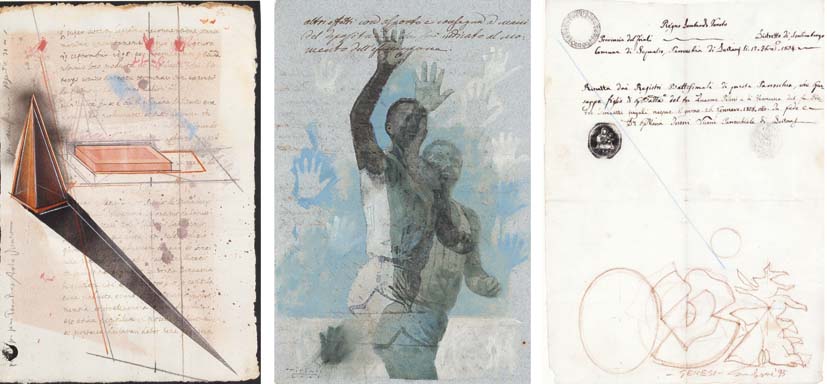 VIZZINI A. - TITONEL A. - SURBONE M. Soggetti vari lotto di tre tecniche miste su carta antica, 31x20 - 30x20 - 27x19,5 tutti firmati
