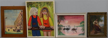 Lotto composto da quattro dipinti di soggetti e misure diverse, in cornici