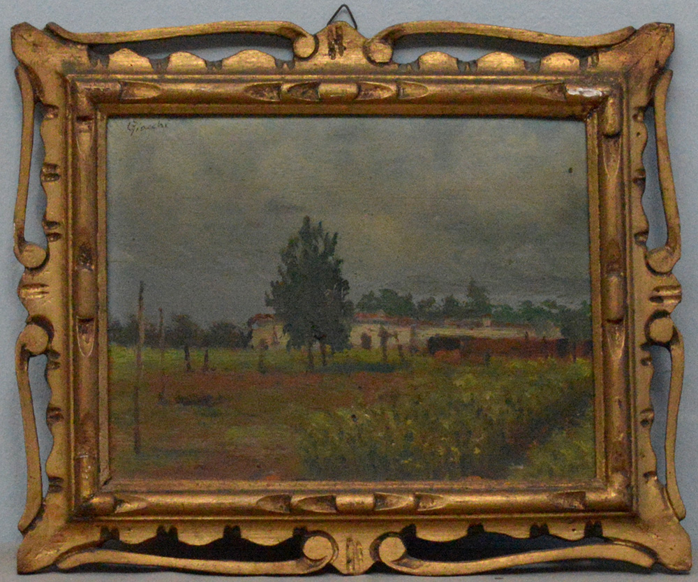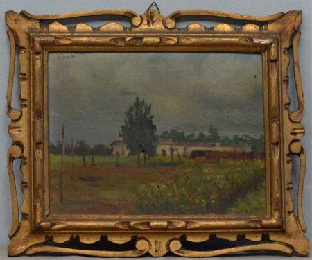 Ignoto "Campagna lombarda" olio su compensato (cm 18x24) in cornice dorata