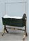 Culla basculante in legno laccato verde con fregi e scanalature dorate....