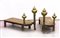 Coppia di antichi alari in ferro battuto con pomoli in bronzo tornito,...