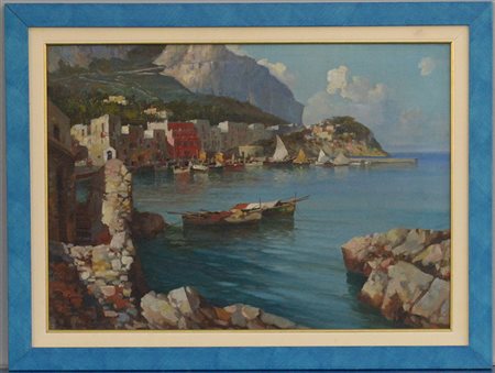 Firma indecifrata "Marina" olio su tela applicata a compensato (cm 49x70) Reca firma Gianni in basso a sinistra. In cornice