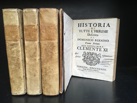 BERNINO D. Historia di tutte l'Heresie. Venezia: Baglioni,1733. 4to, 4 voll....