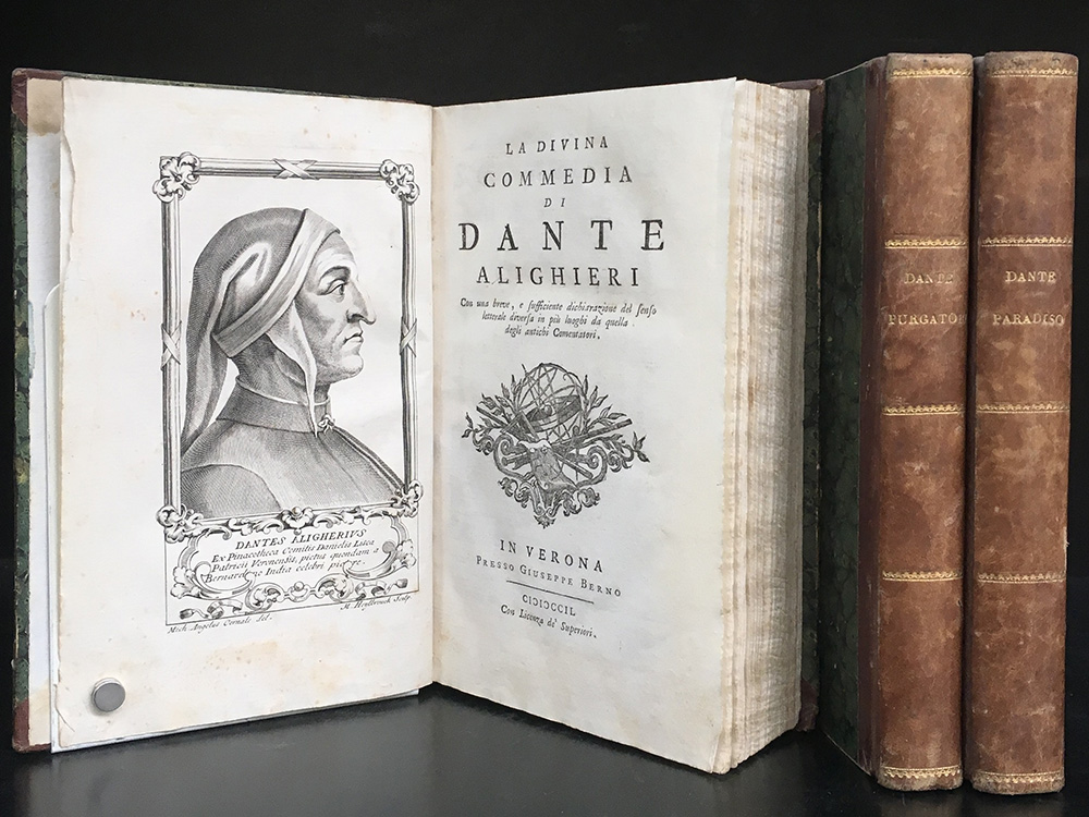 Verona: Giuseppe Berno, 1749. 3 volumi in 8vo, bell'antiporta incisa in rame. Mezza pelle coeva, piatti marmorizzati verdi. Non collazionato e difetti da esaminare.