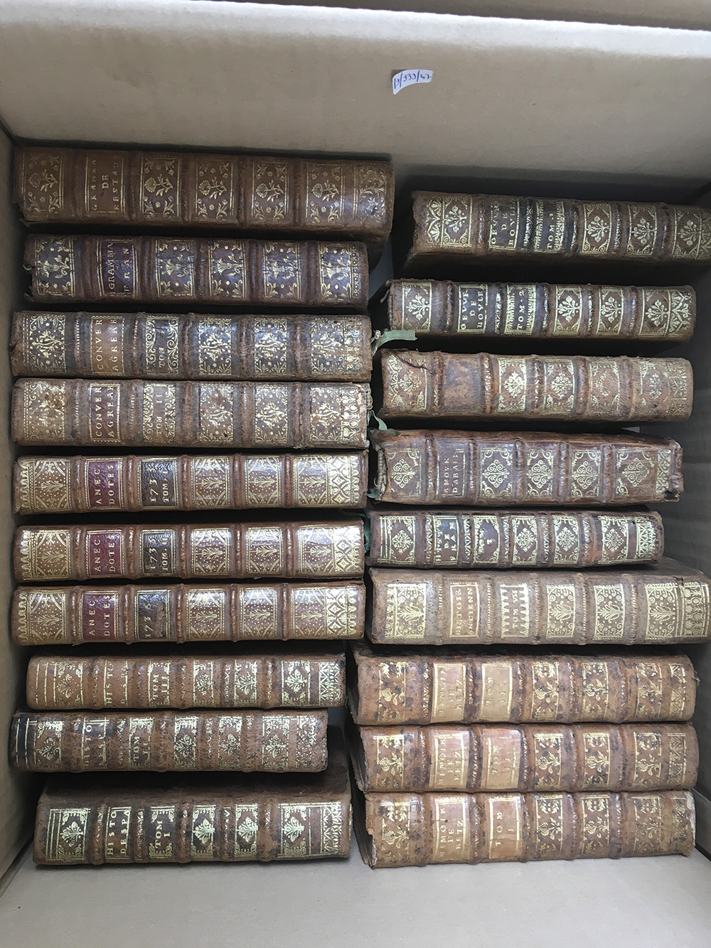 [LEGATURE] Lotto di volumi in 8vo e 16mo di interesse prevalentemente storico e letterario con belle legature del secolo XVIII. Non collazionato e difetti da esaminare.