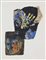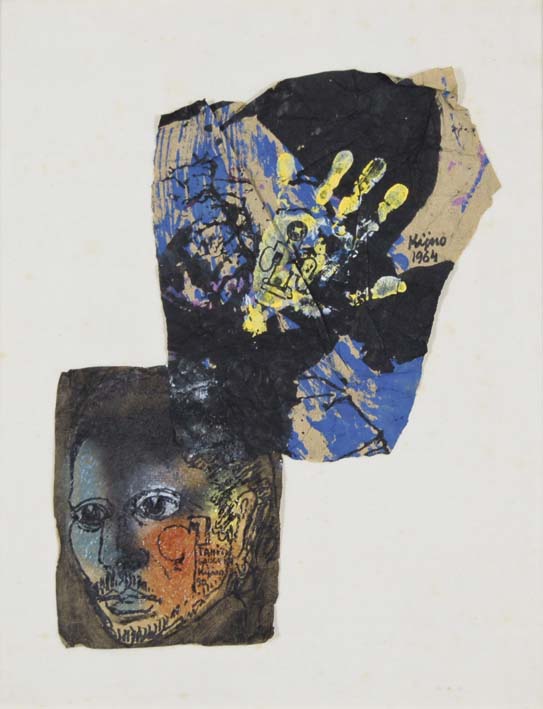 LADISLAV KIJNO Varsavia 1921 La mano 1964 e Paul Gauguin 1990 acrilici su due cartoni stropicciati sovrapposti, 30x40-23x29 firma data e titolo su ciascun elemento autentica dell'Autore su foto esposizioni A.C. Arte Vinciguerra Bellona (Ce) - etichetta e timbro al retro
