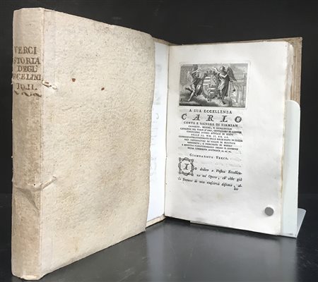 VERCI, Giambattista. Storia degli Ecelini. Bassano: Stamperia Remondini, 1779. Solo 2 (di 3) volumi in 8vo in cartone coevo. Non collazionato e difetti da esaminare.