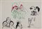 MINO MACCARI Siena 1898 - Roma 1989 Figure 1961 acquerello su carta, 35x50 firma in basso a destra data al centro autentica dell'Archivio Mino Maccari nr. Rep. 4215 su foto