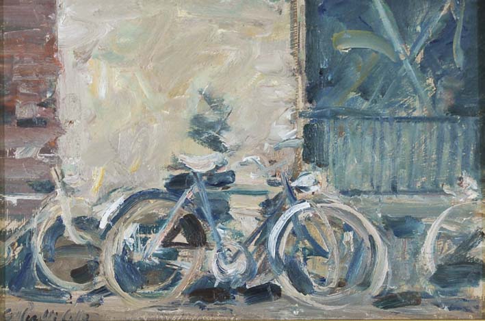 GIANCARLO PERELLI CIPPO Milano 1923 - 2004 Biciclette olio su tavola, 20x30 firma in basso a sinistra firma e titolo al retro