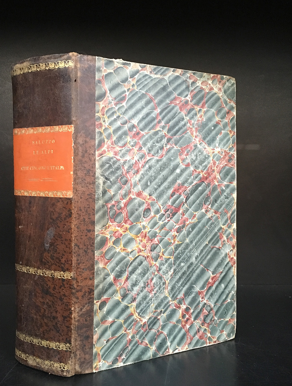 DI SALUZZO, Annibale. Le Alpi Che Cingono L'italia Considerate Militarmente Cosi Nell'antica Come Nella Presente Condizione. Torino: Enrico Mussano, 1845. Primo volume, 8vo, dorso in pelle a sprizzo, tagli a spruzzo. Non collazionato e difetti da esaminare.