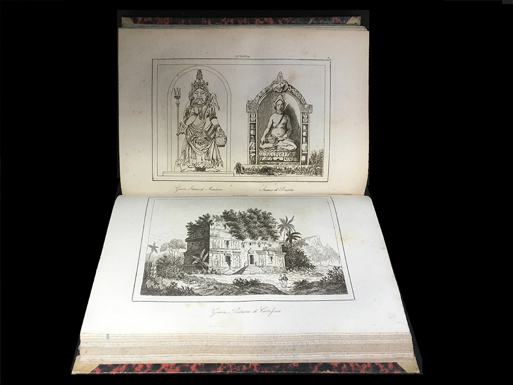 L'Universo pittoresco o storia e descrizione di tutti i popoli. Una serie di volumi riccamente illustrati da belle tavole. 2 volumi dell'OCEANIA di DOMENY DE RIENZI. Due volumi di A.F. FALCONETTI che contengono EGITTO, CHILI, CRIMEA, CINA, ALGERI e la GRECIA. 4 volumi in 8vo, legature uniforme con doro in pelle rossa, pannelli marmorizzati e tagli a spruzzo. Non collazionato e difetti da esaminare.