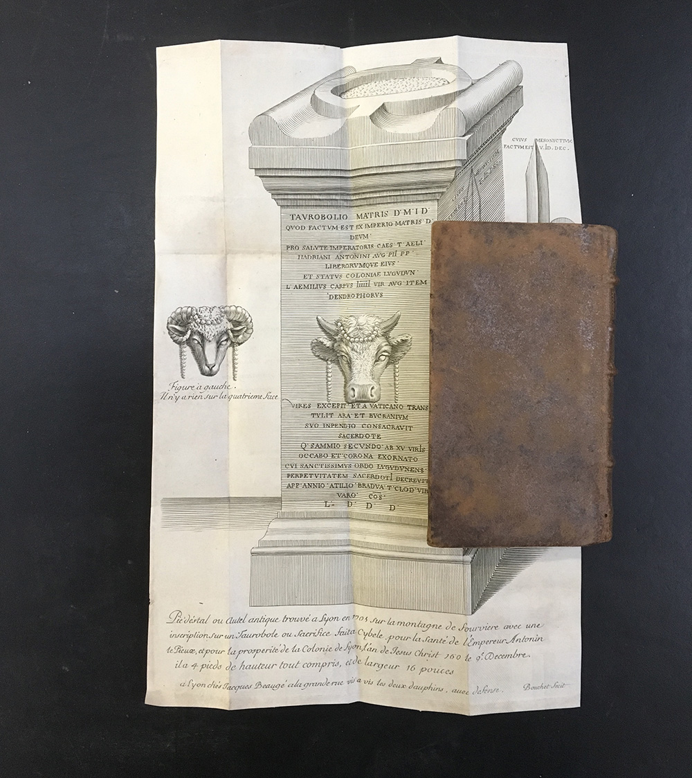 Lyon: Amaulry, Pascal, 1701. [LEGATO CON]: Dissertation sur un monument antique. Lyon: Thomas Amaulry, 1705. 2 opere in un volume, 8vo, tavole incise in rame di cui una grande e ripiegata, pelle coeva, tagli rossi. Non collazionato e difetti da esaminare.