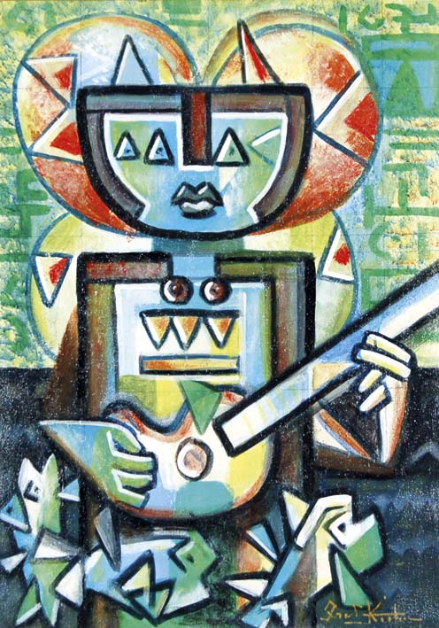 IBRAHIM KODRA Tirana (Albania) 1918 - Milano 2006 Idolo con la chitarra olio su tela, 70x50 firma in basso a destra firma e titolo al retro autentica dell'Autore su foto provenienza Centro d'Arte il Biscione Milano