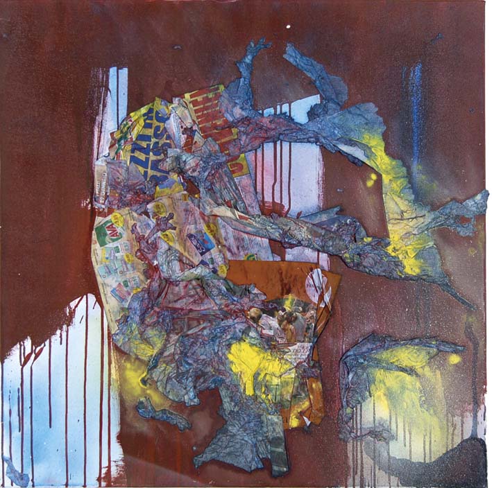 ODDINO GUARNIERI Cavarzere 1932 Attraverso il pensiero in armonia 2009 tecnica mista e collage su tela, 80x80 firma data e titolo al retro autentica dell'Autore su foto