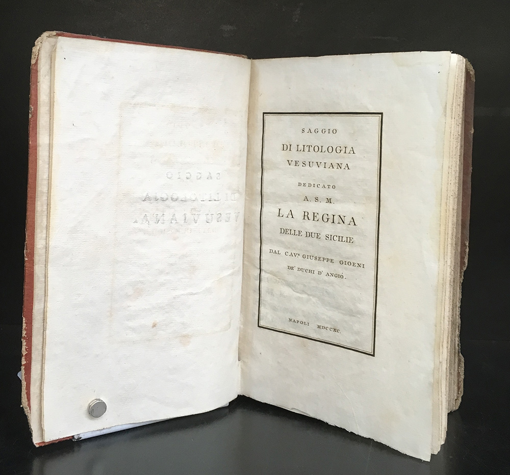 GIOENI G. Saggio di Litologia Vesuviana. Napoli: Simoniana. 1790. 8vo, legatura coeva in cartonato rosso con titiolo in oro su tassello (difetti). Dettagliato studio di scienza litologica sul Vesuvio e l'Etnatra i più accurati effettuati nel XVIII secolo. Non collazionato e difetti da esaminare.