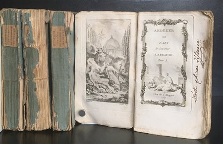LE CAMUS A. Abdeker ou l'Art de conserver la beaute. L'An de l'Hegyre 1168-1170 [Parigi: 1754]. 4 volumi in 12mo, brossura coeva azzurra. Non collazionato e difetti da esaminare.