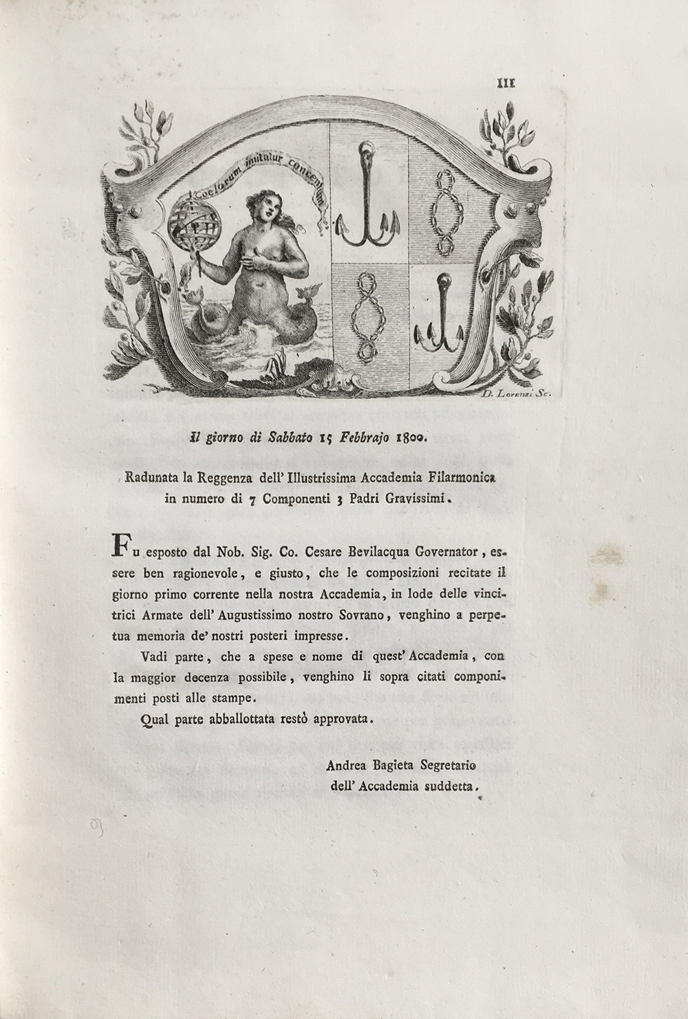 [ACCADEMIA FILARMONICA]. Composizione in lode delle vittoriose Armate...